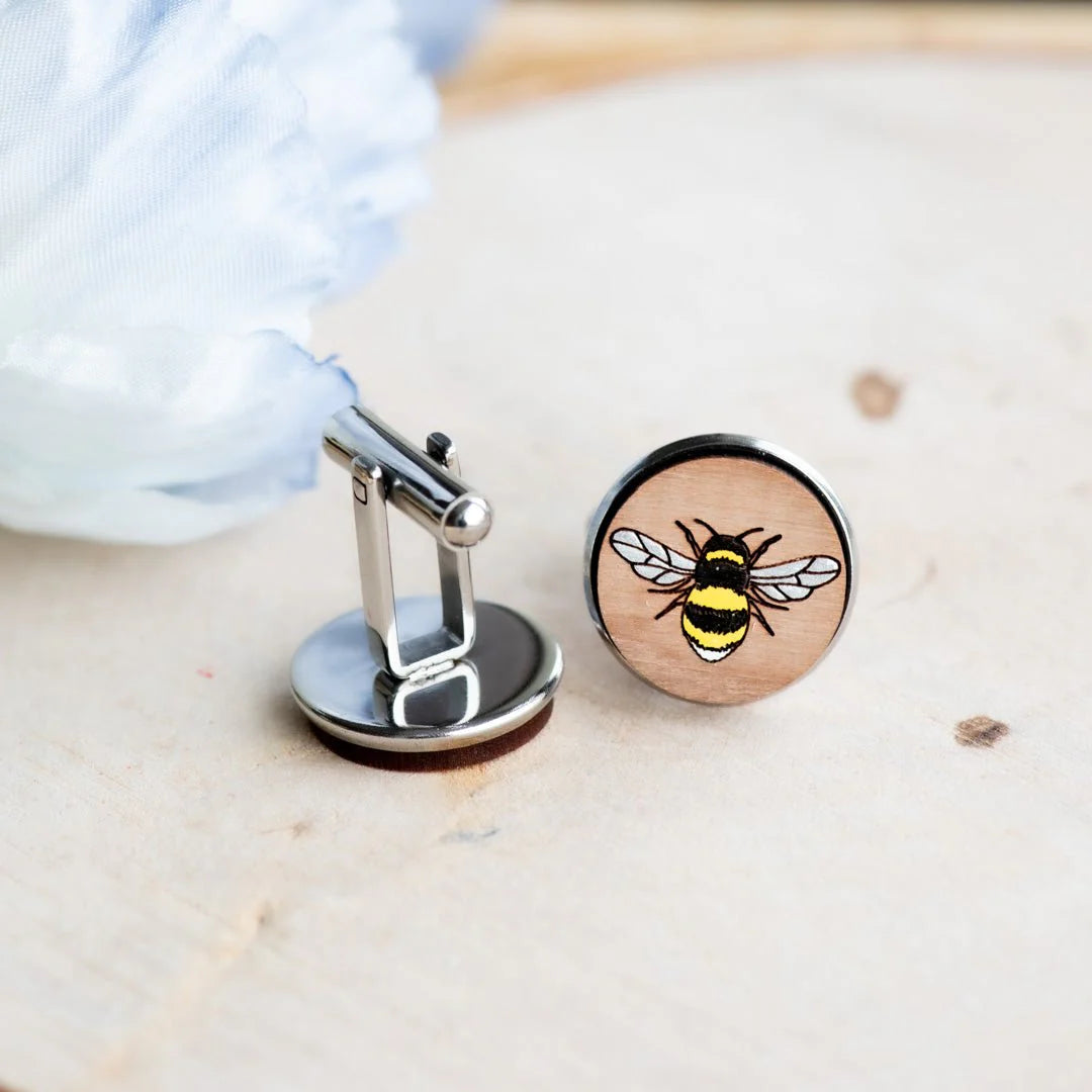 Crafted from sustainably sourced wood, these lightweight hand-painted wooden cufflinks feature a detailed bumble bee design, blending natural beauty with refined style. Finished with hypoallergenic stainless steel fittings, they are suitable for sensitive skin and comfortable for extended wear. These eco-friendly wooden cufflinks are perfect for nature lovers, garden enthusiasts, and anyone who enjoys distinctive accessories with meaning. An ideal wedding gift, Father’s Day present, birthday surprise, or thoughtful Christmas gift, they combine handcrafted detail with elegant, countryside-inspired character.